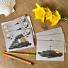 The packs of 6 cards include 3 of each design. The designs are as follows: