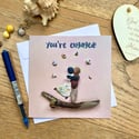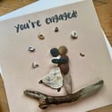 This contemporary square engagement card is the perfect way to wish the new couple 'congratulations' on their big news. The high quality photograph features a couple made out of shells and pebbles standing on a piece of driftwood. The text above reads: